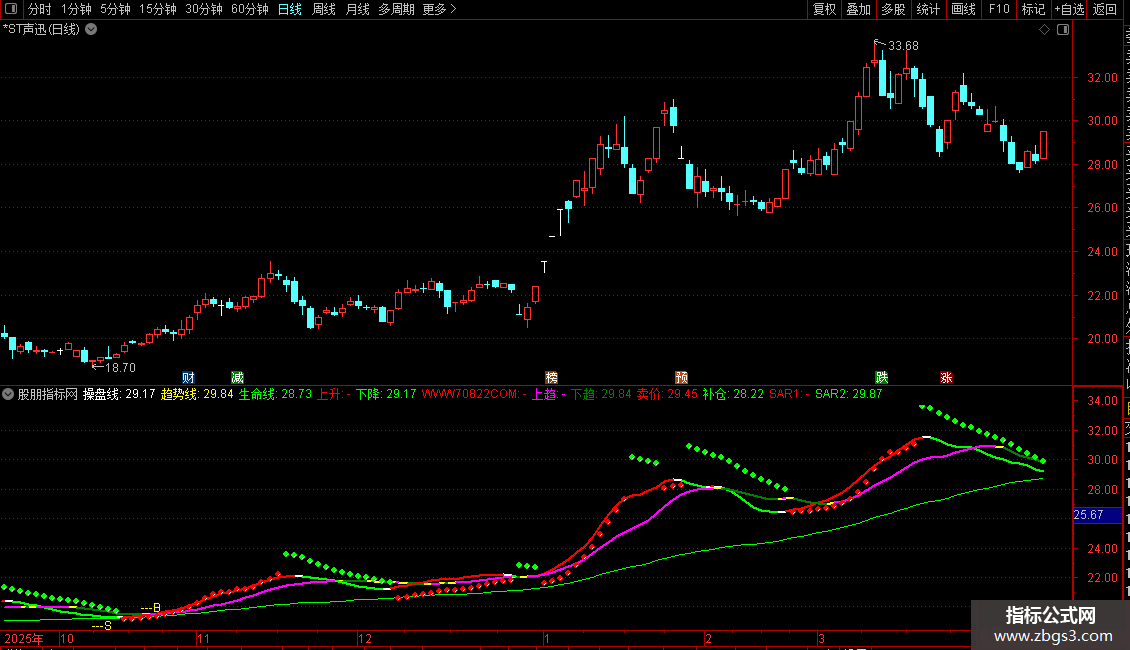 利用趋势线,操盘线,生命线,三线来做波段炒股,适合超短线、中线、甚至长线炒股;