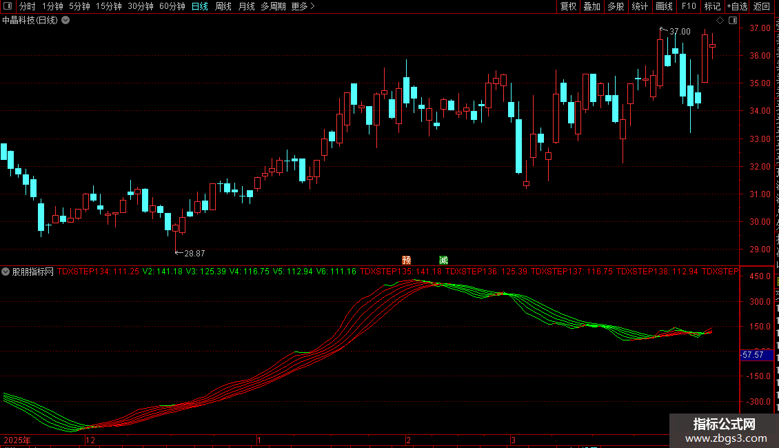 TDXSTEP136:IF(V3>=REF(V3,1),V3,DRAWNULL),COLORRED;