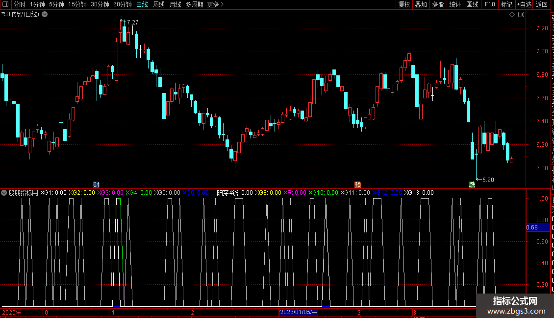 一阳穿4线:OPEN<X_66 AND CLOSE>X_56;