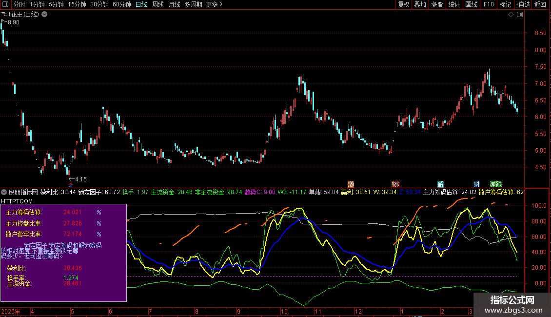 DRAWTEXT_FIX(CURRBARSCOUNT=1,0.01,0.30,0, '散户套牢比率:'),COLORYELLOW;