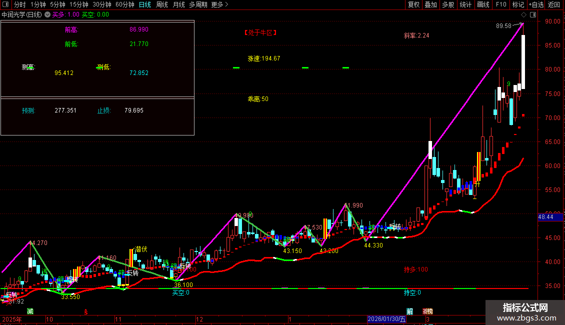 斜率B:=SLOPE(BBI,3)*10,COLORMAGENTA,NODRAW;