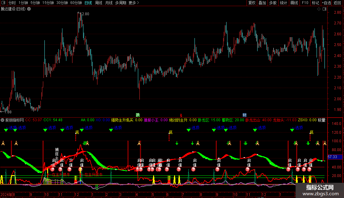 DRAWICON(卧龙出山>40 AND REF(卧龙出山,1)<40 AND CC>CC1,40,13);