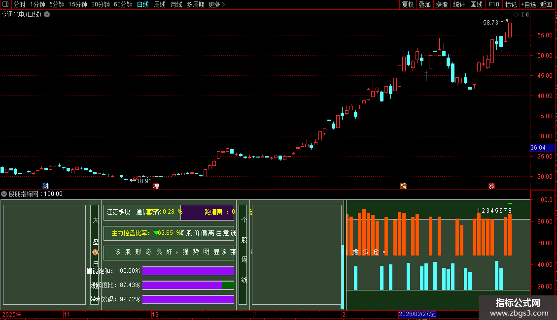主力控盘比率:=主力筹码估算/(主力筹码估算+散户筹码估算)*100,NODRAW,LINETHICK0;