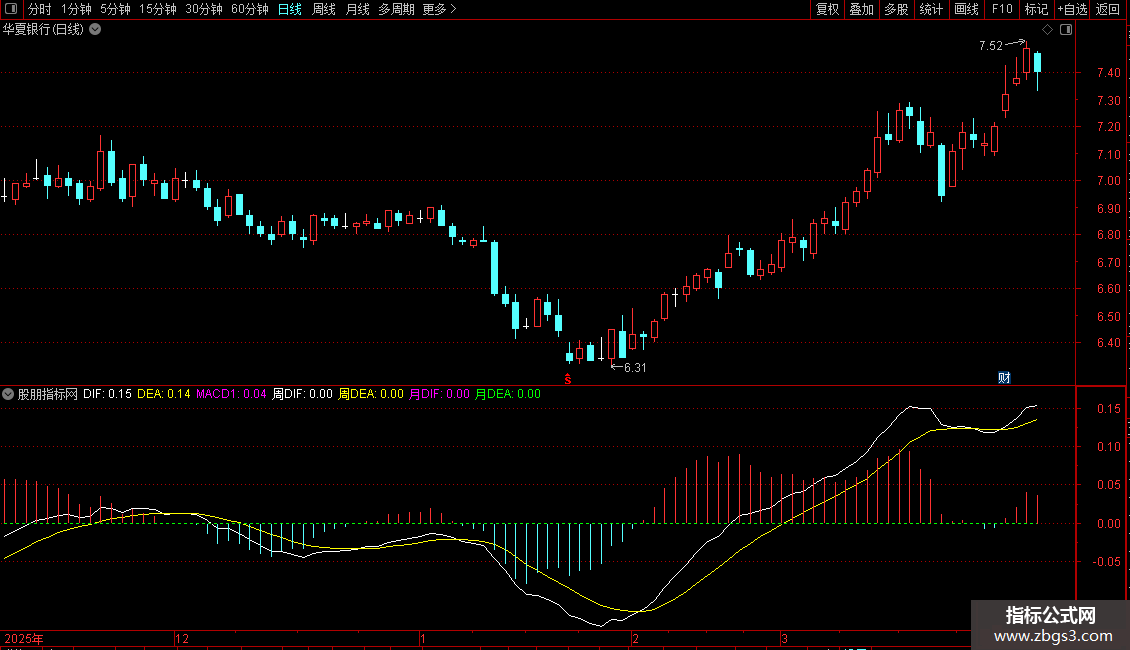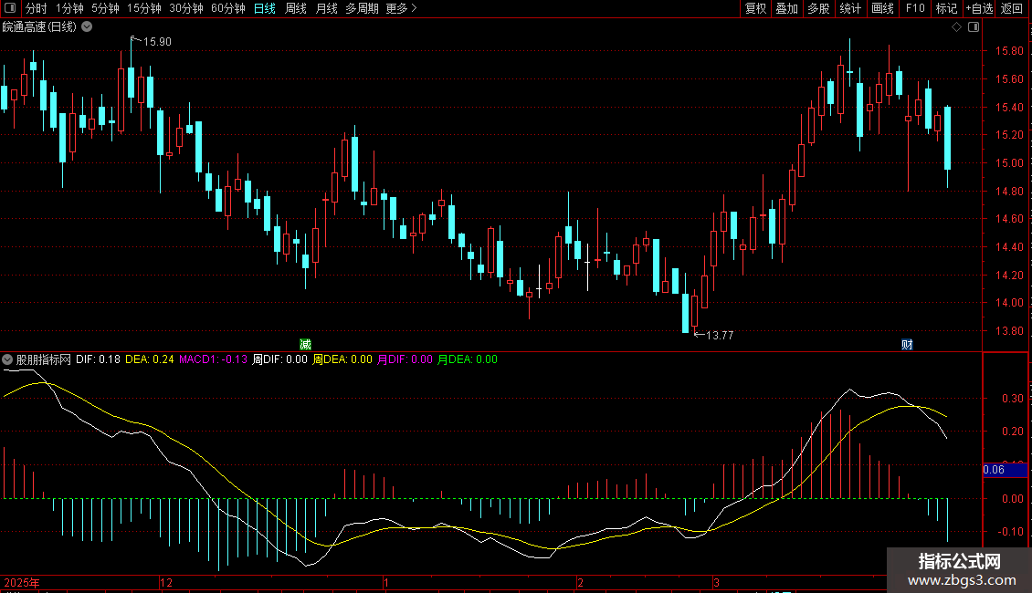 周DIF:"MACD.DIF#WEEK"COLORWHITE,DOTLINE;