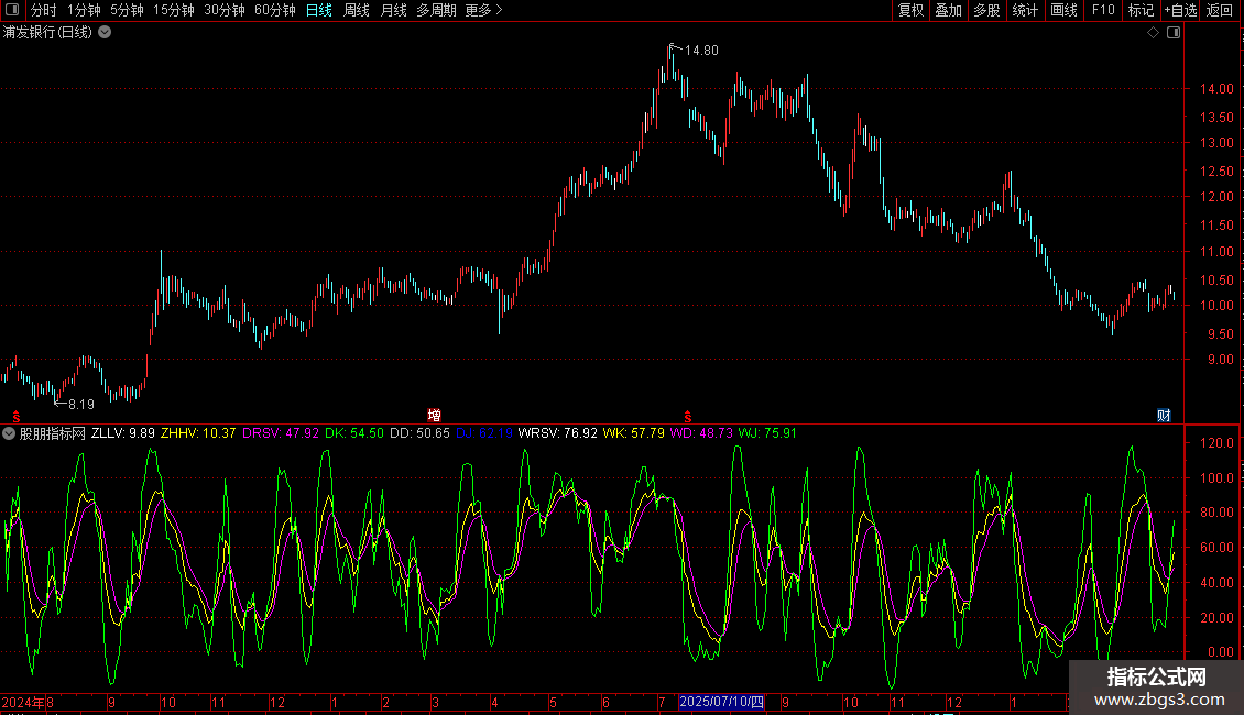 日周月KDJ三副(指标、副图、通达信、 贴图 )不加密、同日线同图看盘】编写,仅做集合方便看盘