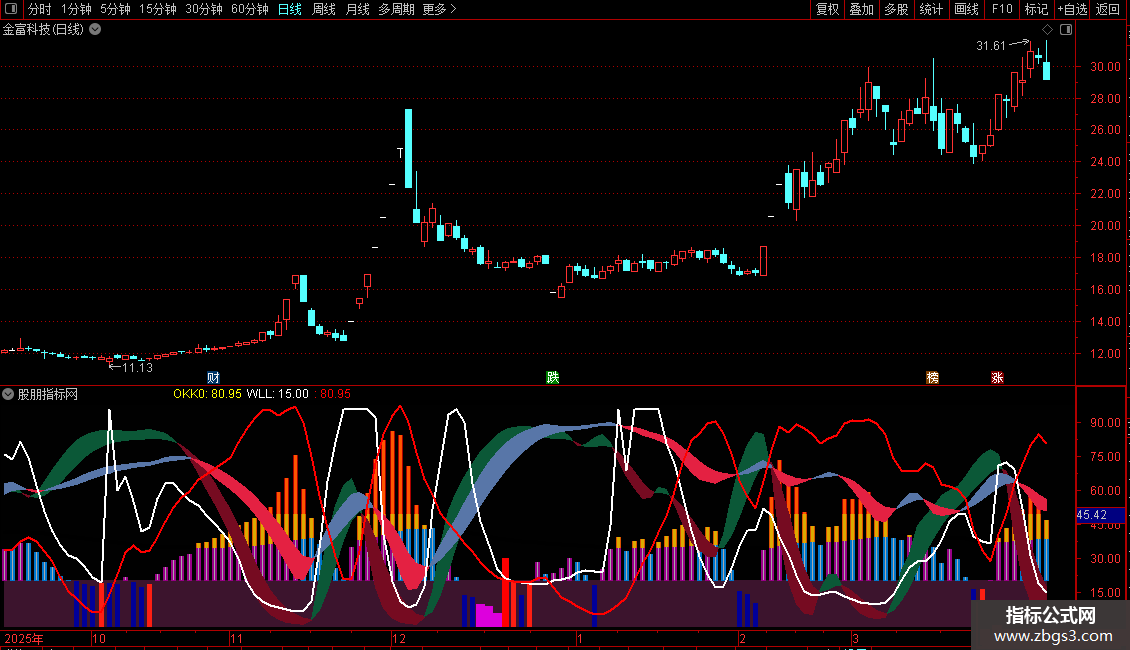 2、趋势提示:该指标在日线、周线、月线均有较好的参考意义,短线波段,中长期趋势均能提供较为明确的买卖参考,尤其是周线和月线方面该指标的具体应用,可参考性极强。