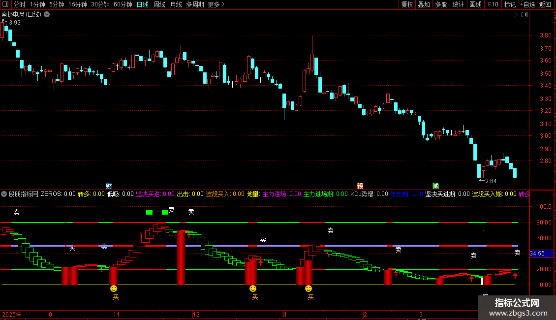 DRAWTEXT(低吸 AND 最佳买点<1,-16,'吸'),COLORWHITE;