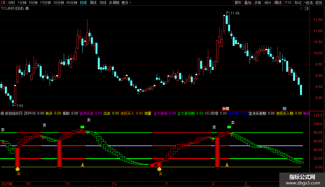 STICKLINE(CROSS(天线,多方趋势),90,95,6,0),COLOR00FF00;