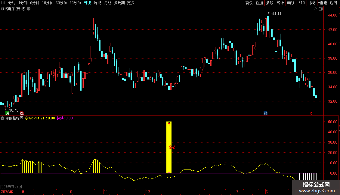 多空:EMA((CLOSE-MA((2*CLOSE+HIGH+LOW)/4,30))/MA((2*CLOSE+HIGH+LOW) /4,30)*100,3),COLORYELLOW;