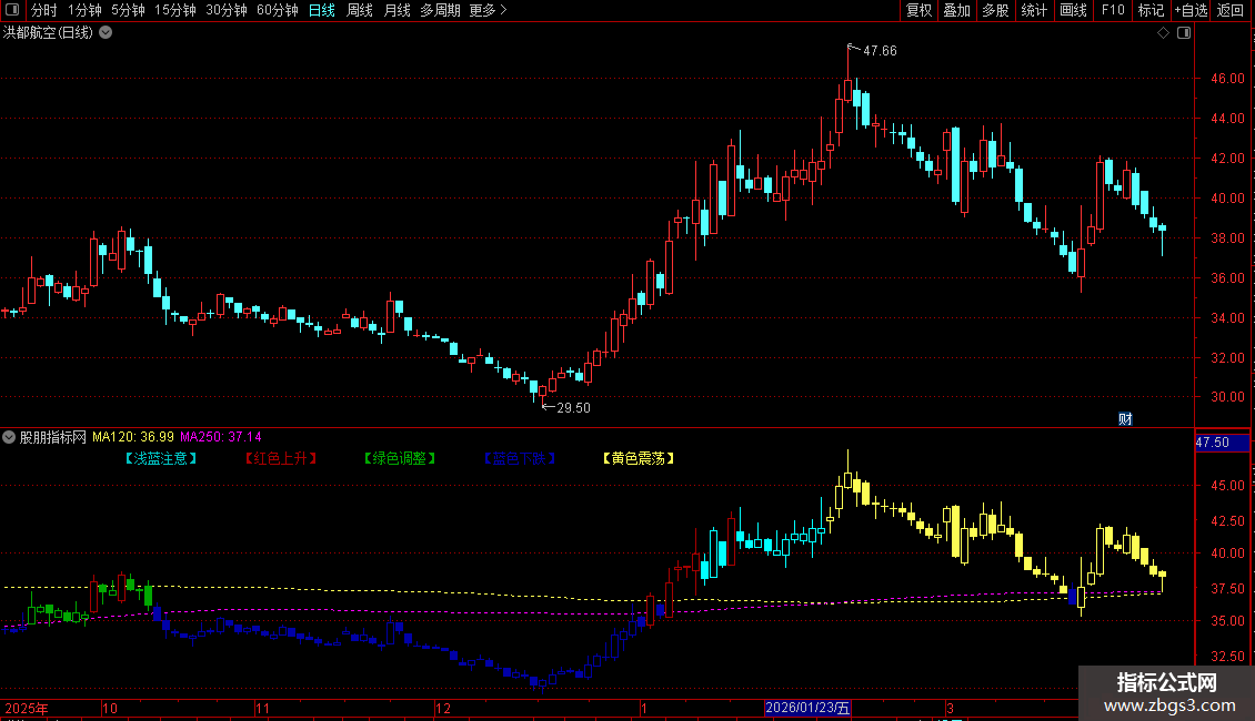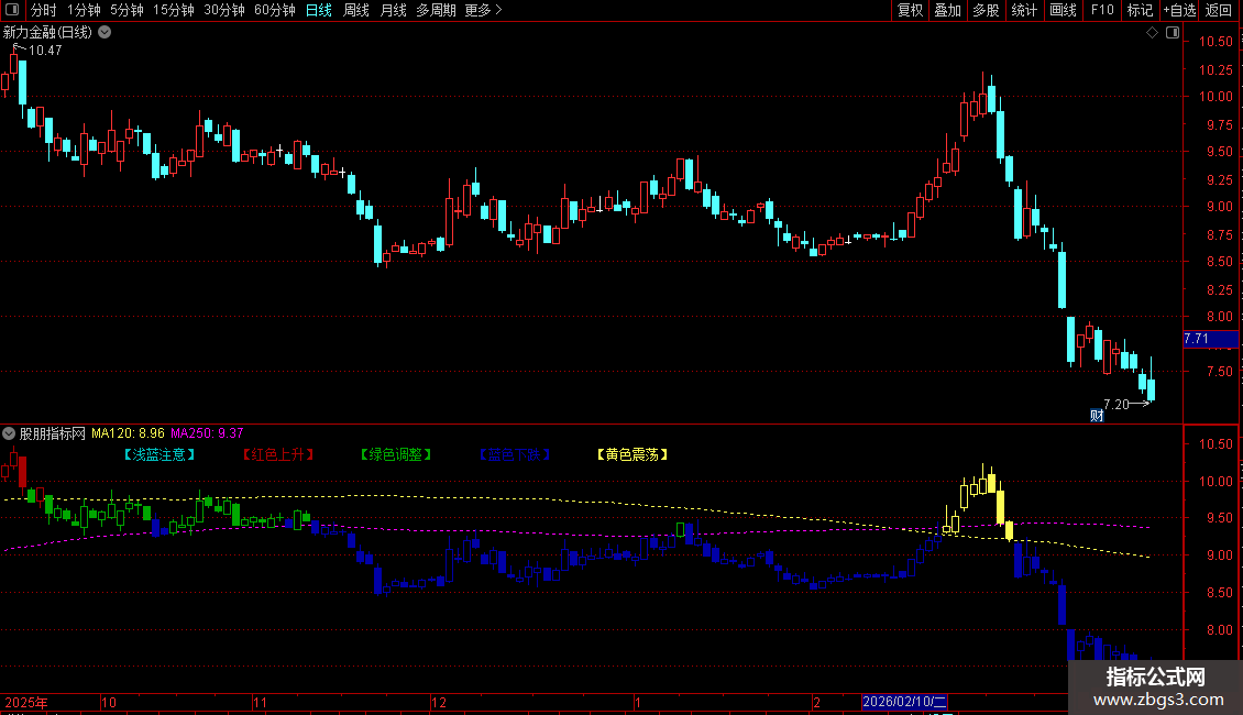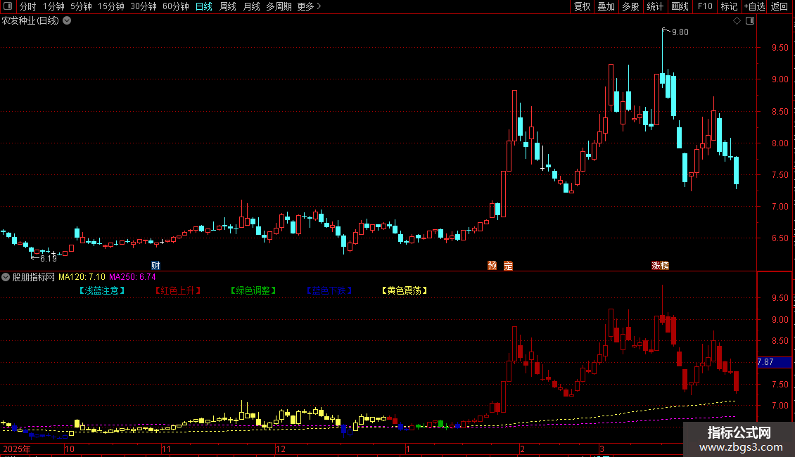 通达信系统自带-五彩K线-牛熊时段主图指标 源码 贴图