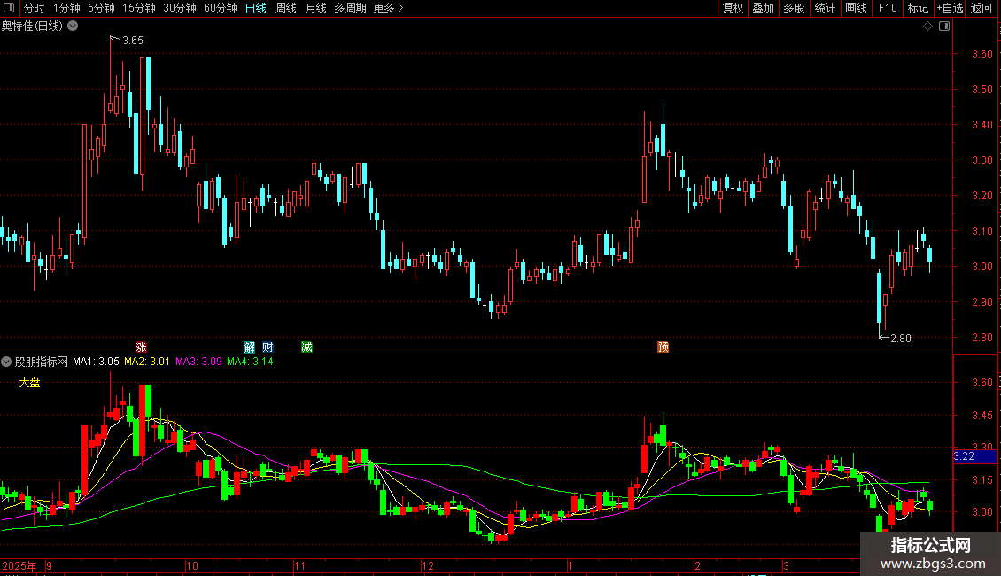 分享一个大盘K线的附图指标,同时对照大盘的K线走势,可以随时知道个股和大盘指数对比的强弱!