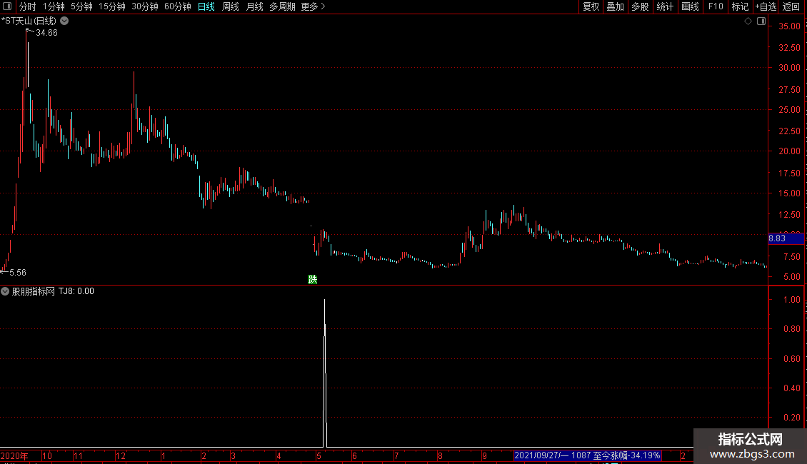 X_5:=(REF(CLOSE,1)-REF(CLOSE,2))/REF(CLOSE,2)*100<9.84;