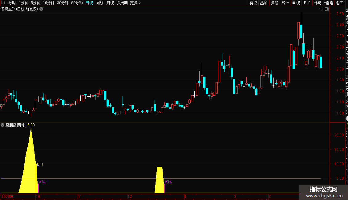 STICKLINE(CROSS(3.8,关注) AND 关注<REF(关注,1),0,3,1,0)*SJ,COLORFF00FF;