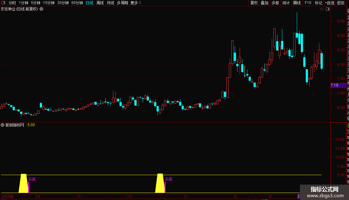 DRAWTEXT(CROSS(3.8,关注) AND 关注<REF(关注,1),3.8,'买底')*SJ,COLORFF00FF;