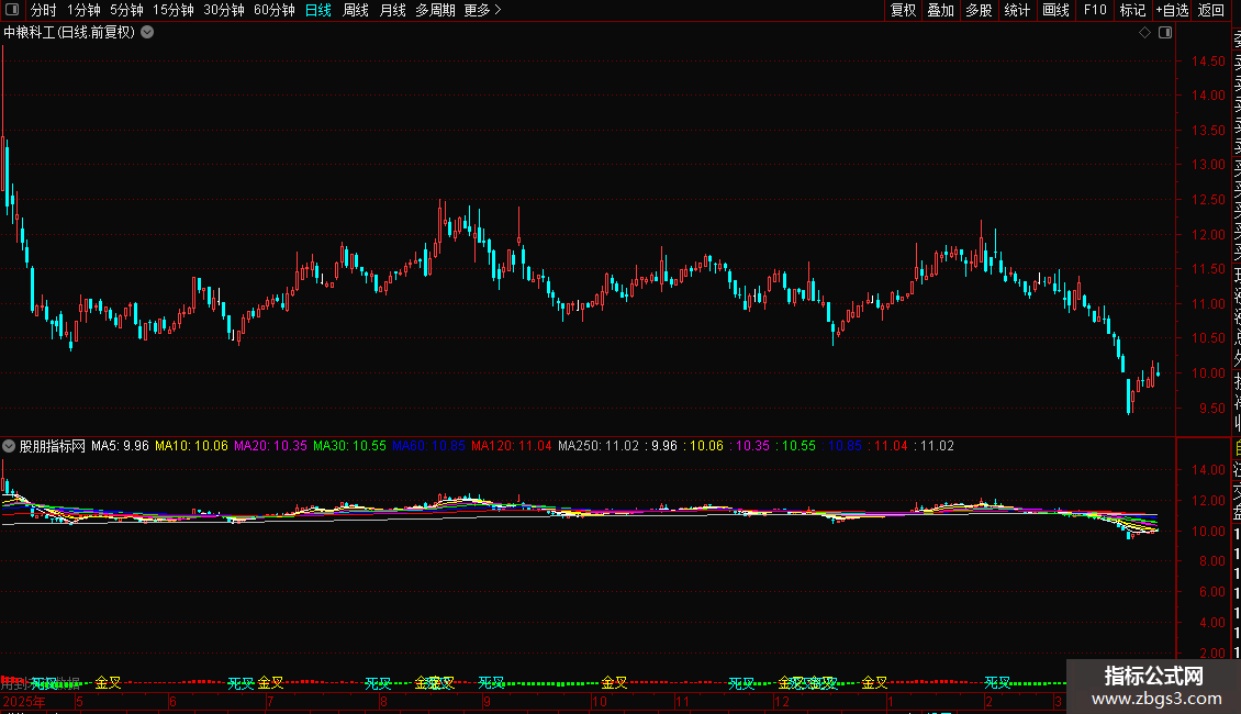 DRAWTEXT(CROSS(VAR2,VAR1),VAR3*1.1,'死叉'),COLORCYAN;