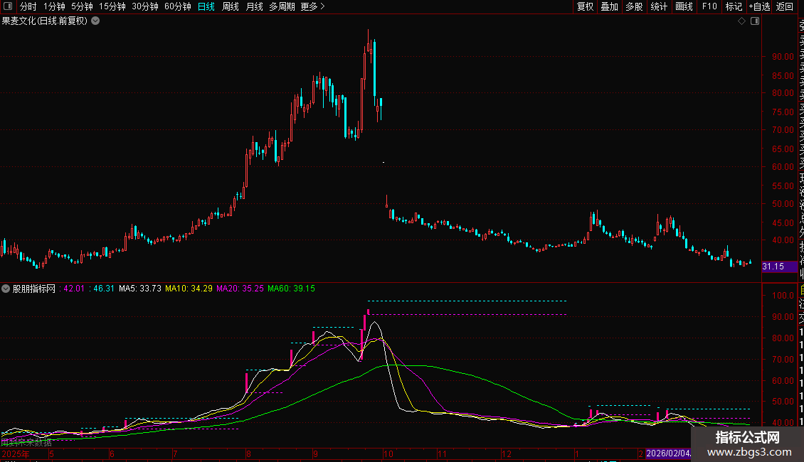 MA20:MA(CLOSE,20),COLORFF00FF;