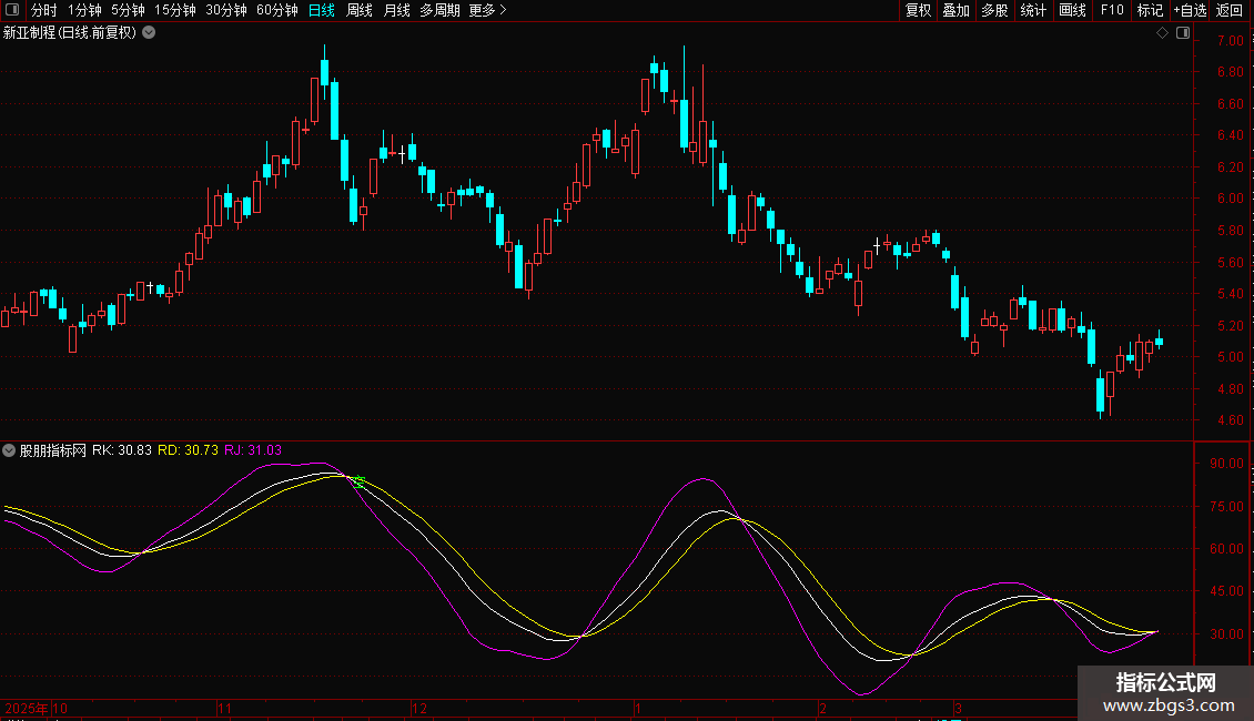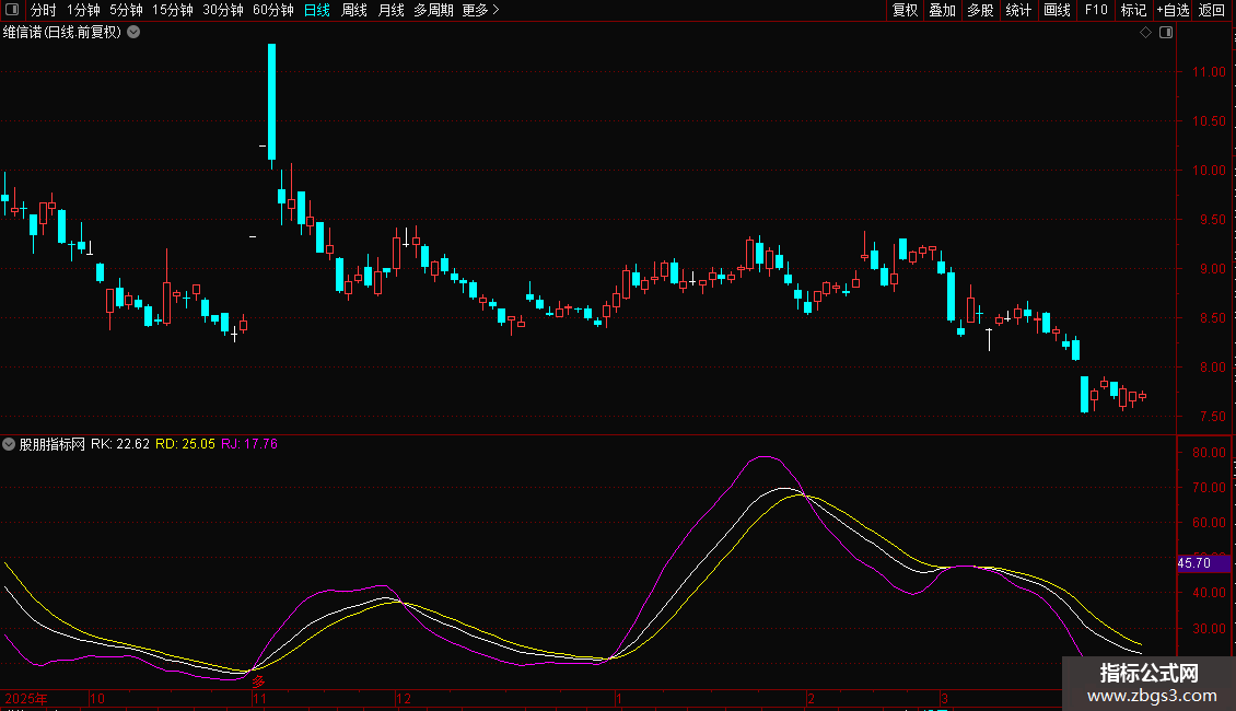 DRAWTEXT(CROSS(RK,RD)*SJ&&RD<20,RK*0.80,'多'),COLORRED;