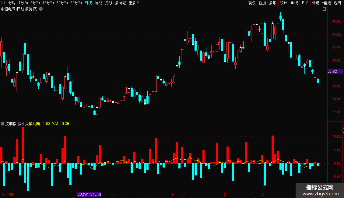 STICKLINE(大单动向<0,0,大单动向,0.5,0),COLORCYAN;