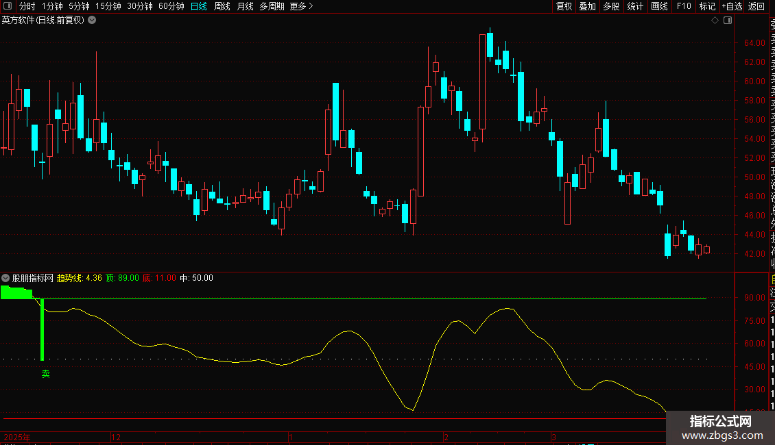 准备卖出:STICKLINE(趋势线>89,趋势线,89,5,0),COLORGREEN;