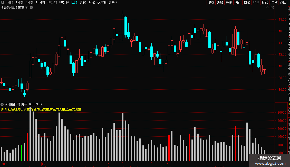 DRAWTEXT_FIX(ISLASTBAR,0,0,0,'说明: 红色柱为吸货量,绿色为出货量,黄色为天量,蓝色为地量'),COLORYELLOW;