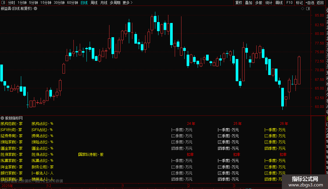 DRAWTEXT_FIX(ISLASTBAR,0.25,0.5,0,STRCAT('[国家队持股] ',STRCAT(CON2STR(国家队持股数量,0),' 股'))),COLORYELLOW;