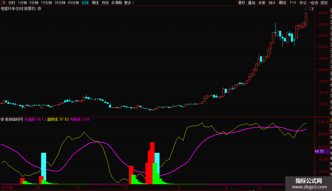 长趋势:EMA(VARD,N), COLORFF00FF,LINETHICK2;