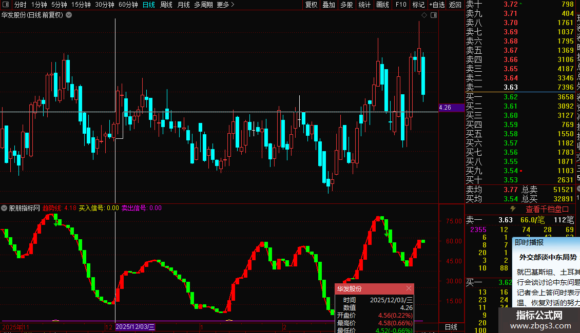STICKLINE(趋势线>=REF(趋势线,1),趋势线,REF(趋势线,1),3,0),COLORRED;