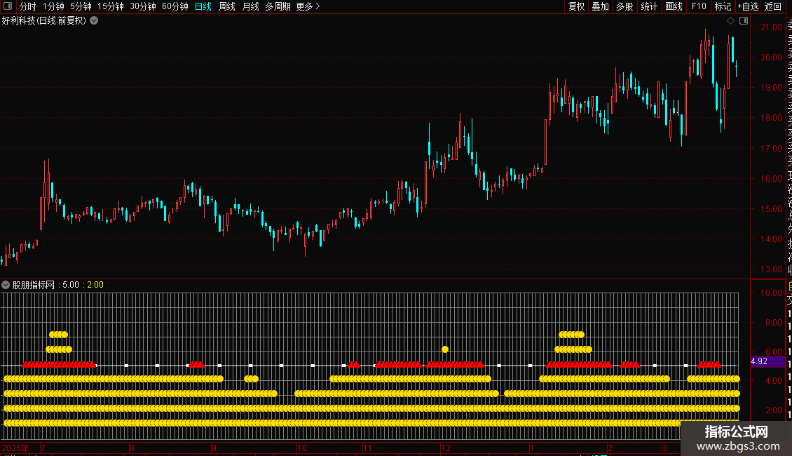 黄色一行出现,开始关注,二行出现,开始反弹,出现三四行,此股有行情,红色三角出现,此股开始走强,黄色,出现五行六行,进入主升浪,如果继续,黄色出现七卦、八卦,不是牛股就是妖股,抓住它。
