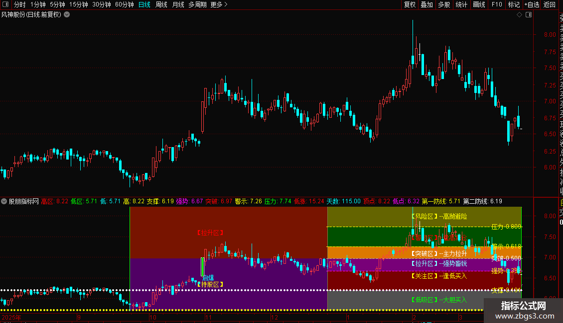 主图是黄金分割彩图,股价所处位置一目了然,恐高畏低的看一看
