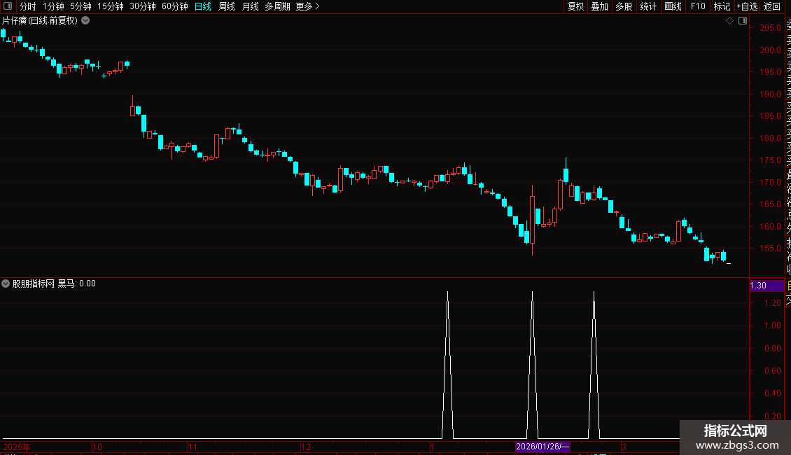 黑马:IF(VAR19<=VAR41 AND VAR19<=VAR42 AND VAR19<=VAR43 AND VAR1A4>=VAR41 AND VAR1A4>=VARC4 AND VAR15>0 AND VAR18>0,1.3,0);