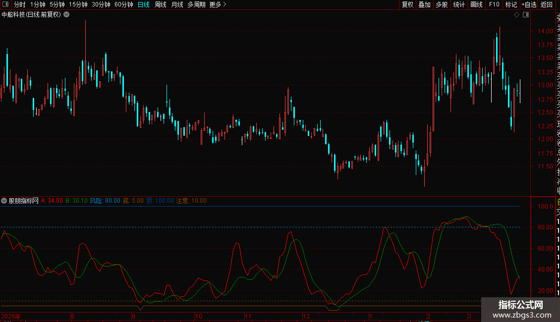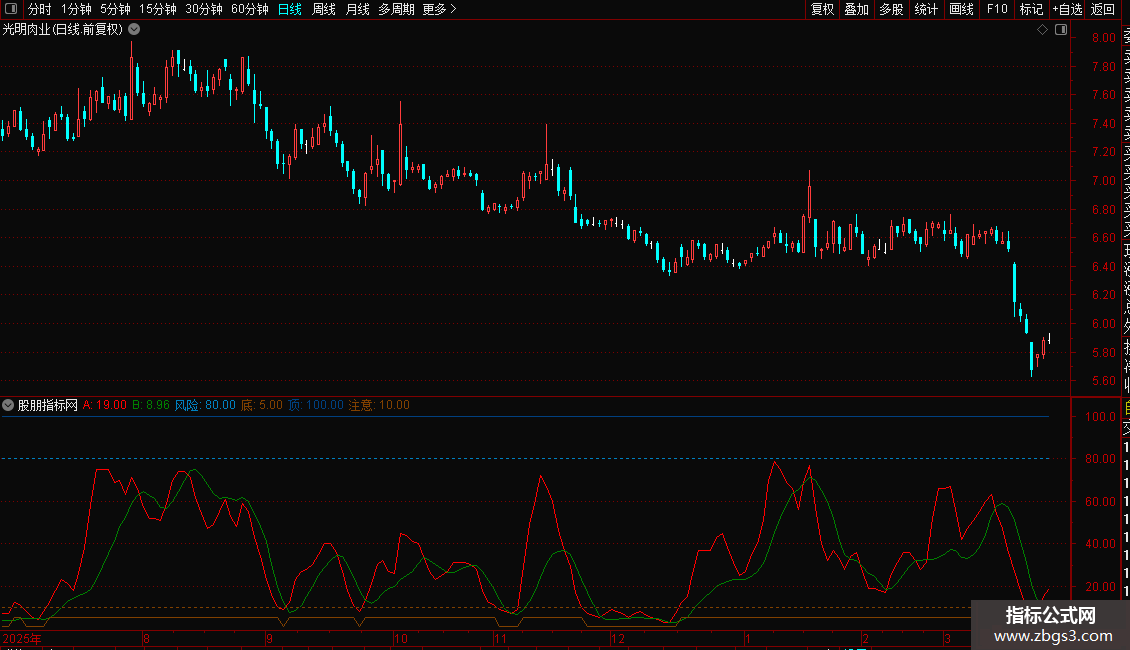 波段买卖点 风险顶底注意副图指标 源码 通达信 附图