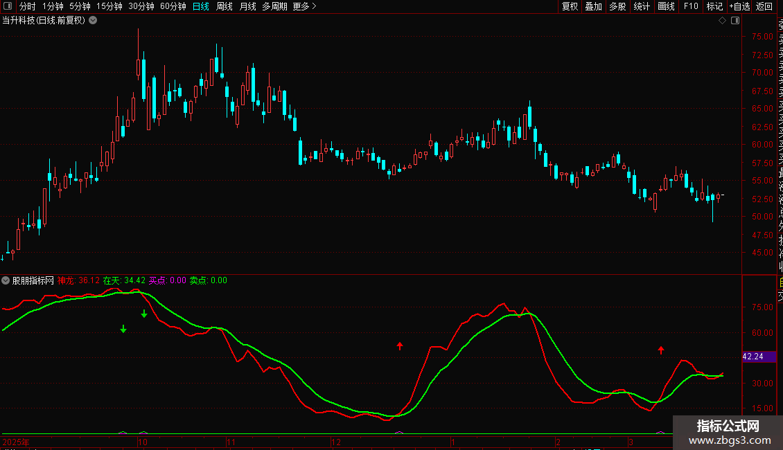 通达信系统自带公式-龙系-SLZT(神龙在天)开发改编。坛友可自行对照,比系统公式更直观。