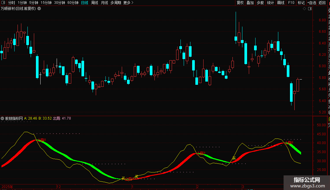 DRAWTEXT(CROSS(A,B) ,A,'买'),COLOR00FFFF;