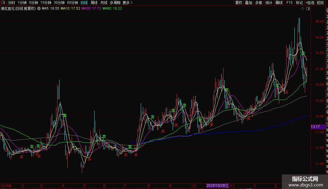 DRAWTEXT(CROSS(买线,卖线),LOW*0.98,'买'),COLORRED;