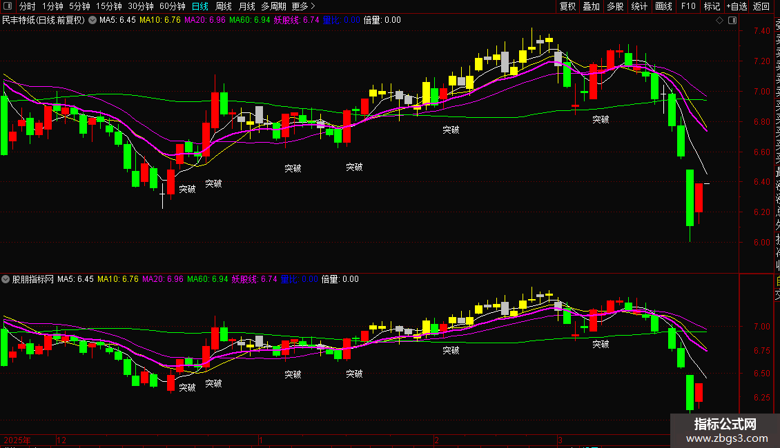大道至简!简单两条线即可判断所选标的是否强势,是否存在成为妖股的可能!用法:突破“妖股平台”线,趋势上行!