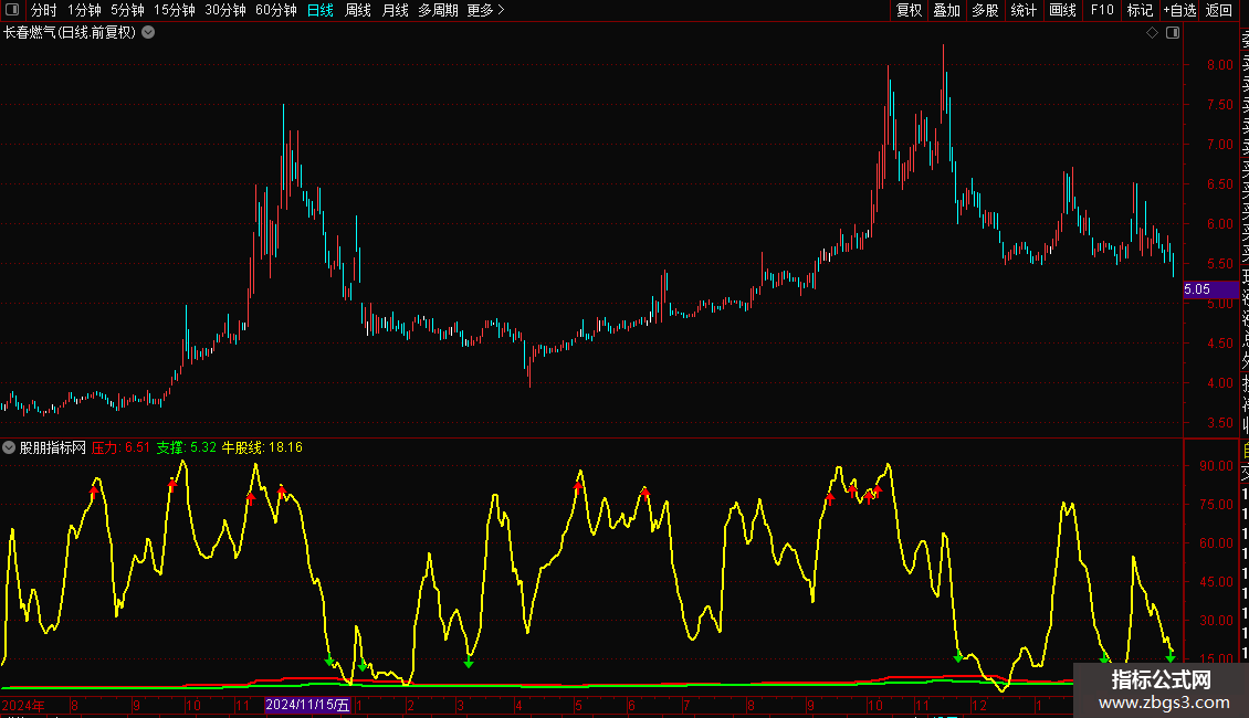 {通达信支撑压力看牛股副图指标加密 无未来}