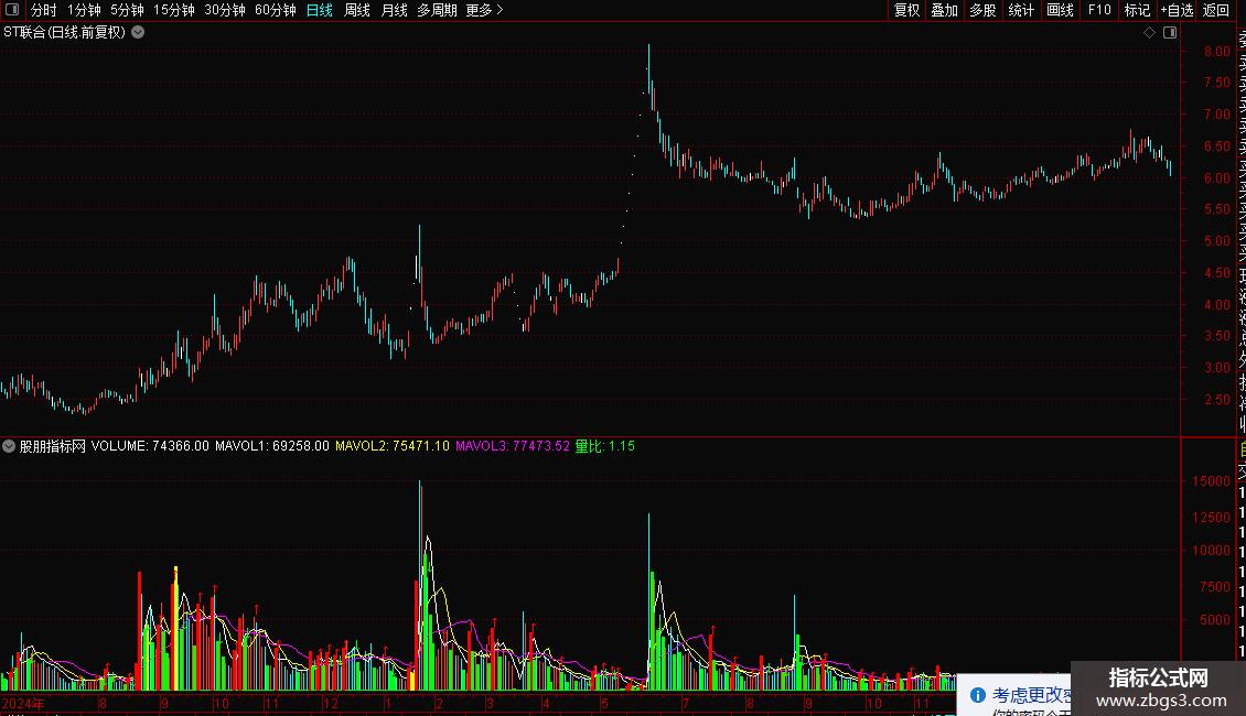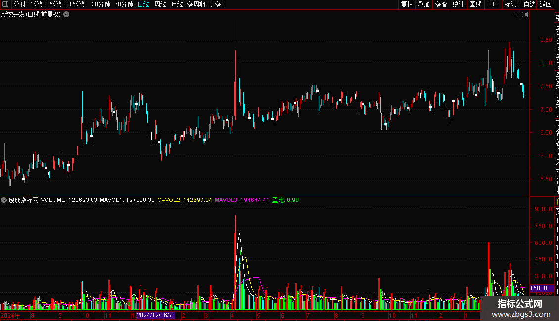 STICKLINE(VOL>REF(VOL,1)*1.5 AND C>REF(C,1),VOL,0,1.5,0),COLORRED;
