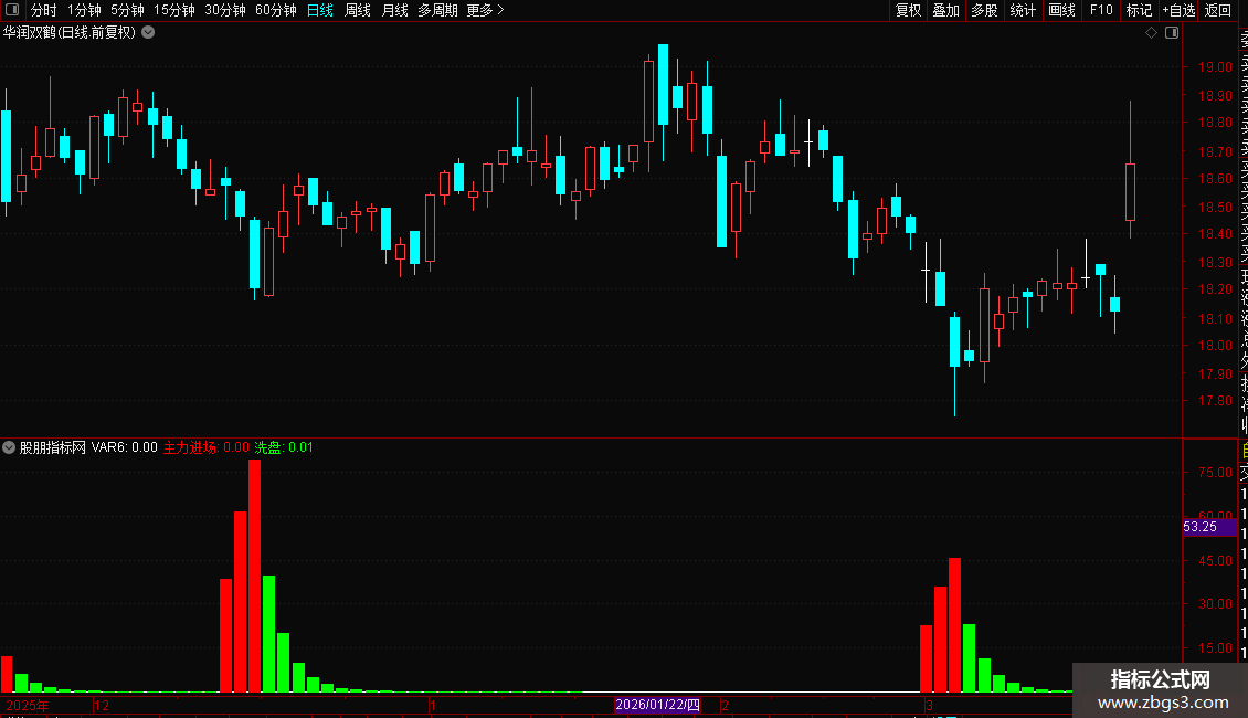 主力进场:IF(VAR5>REF(VAR5,1),VAR5,0),COLORRED,NODRAW;