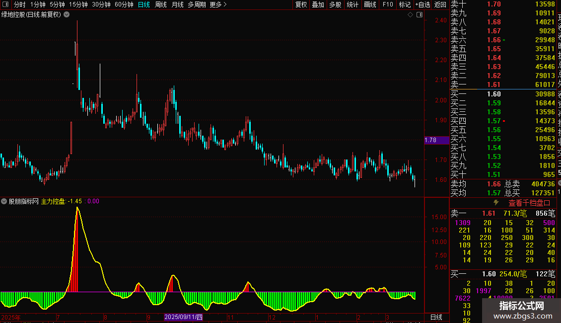 STICKLINE(控盘<0,控盘,0,2,0),COLOR00FF00;