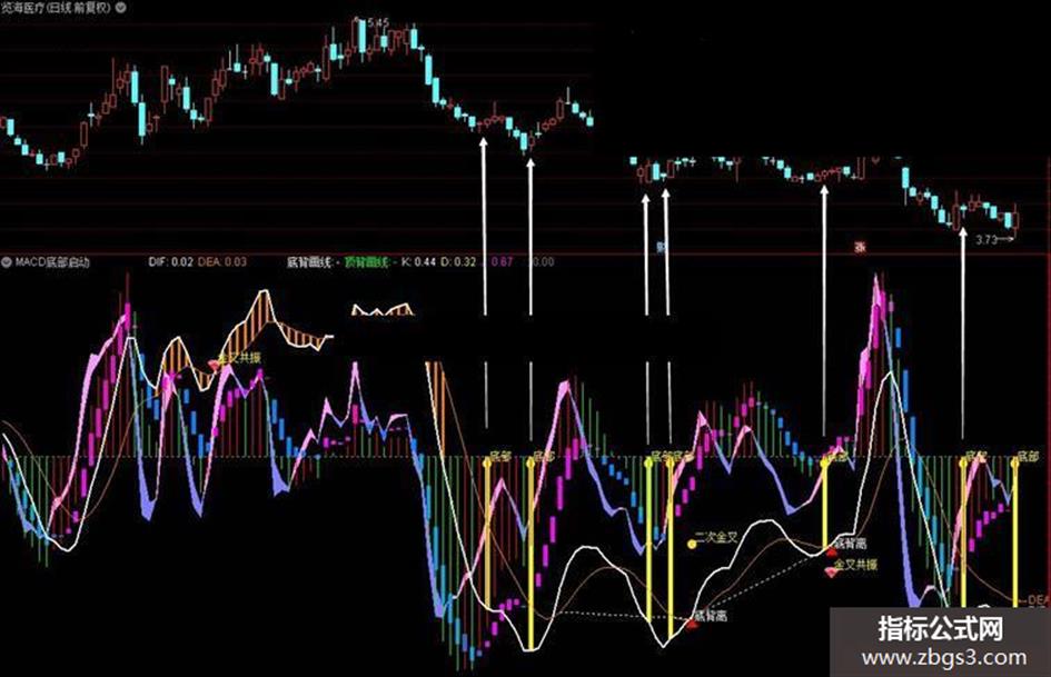 底背离:=REF(CLOSE,A1+1)>CLOSE AND DIF>REF(DIF,A1+1) AND CROSS(DIF,DEA);