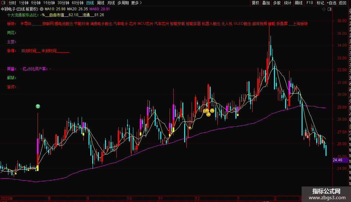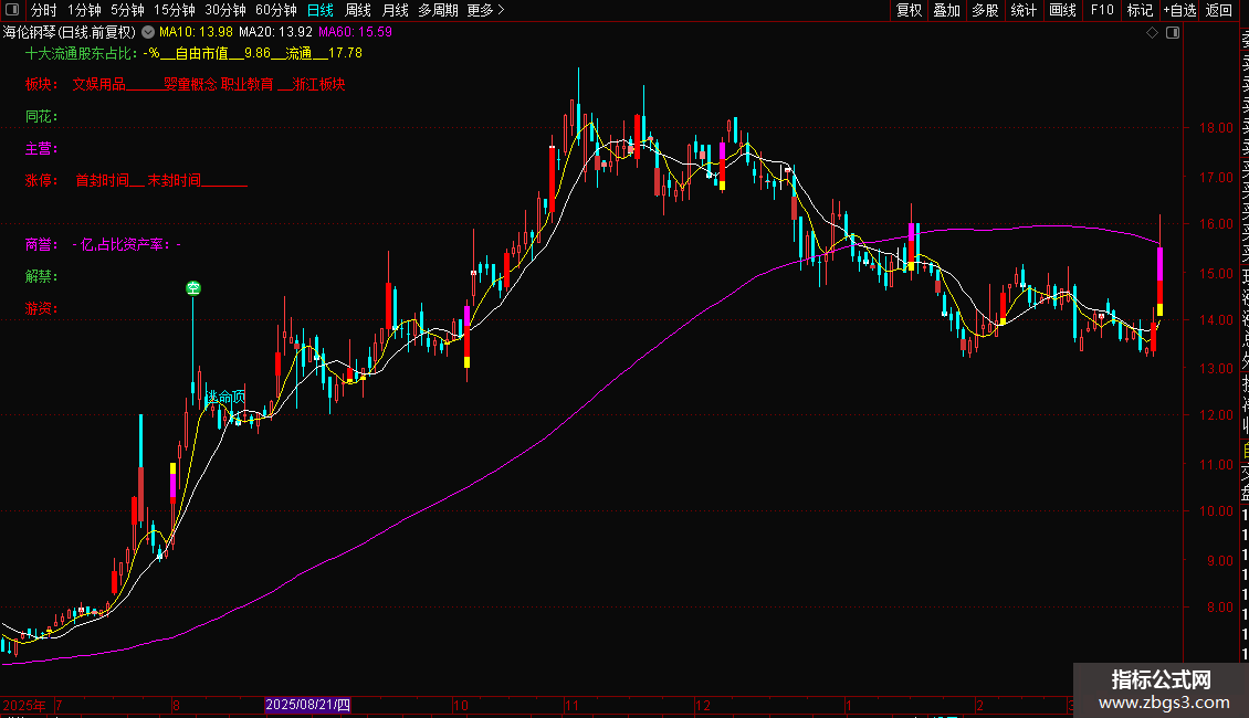 指标左上角添加十大流通股东占比,并在当日K线的右下方添加所属行业。