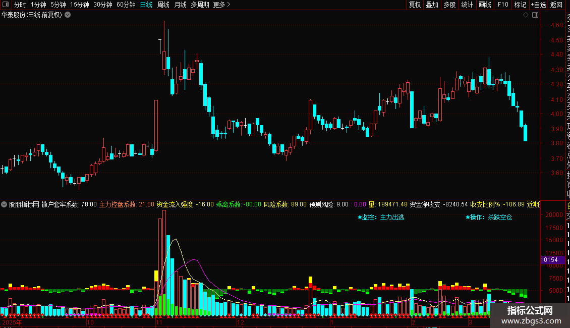 三日资金:SUM(资金收支,3),COLORWHITE,NODRAW;