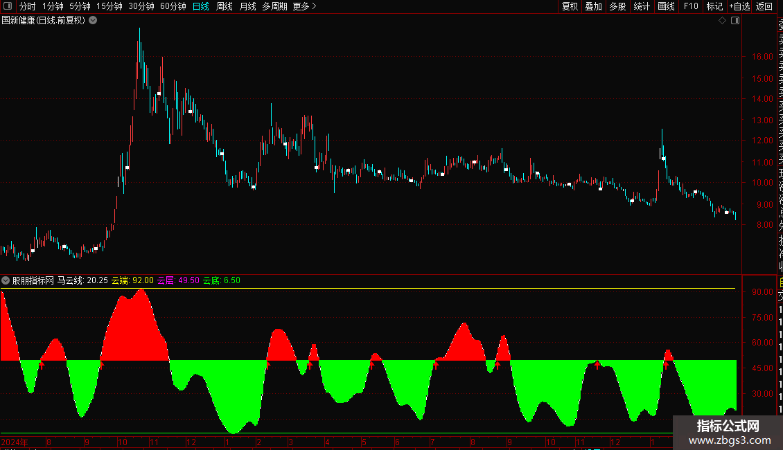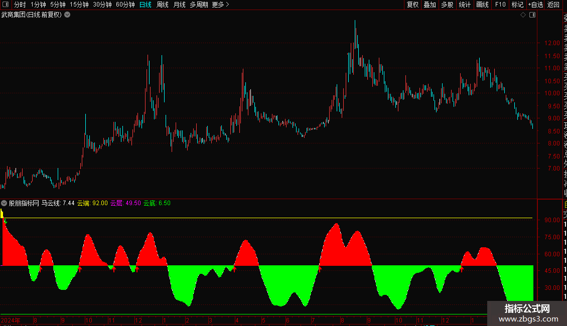 STICKLINE(马云线<云层,马云线,云层,2,0),COLORGREEN;