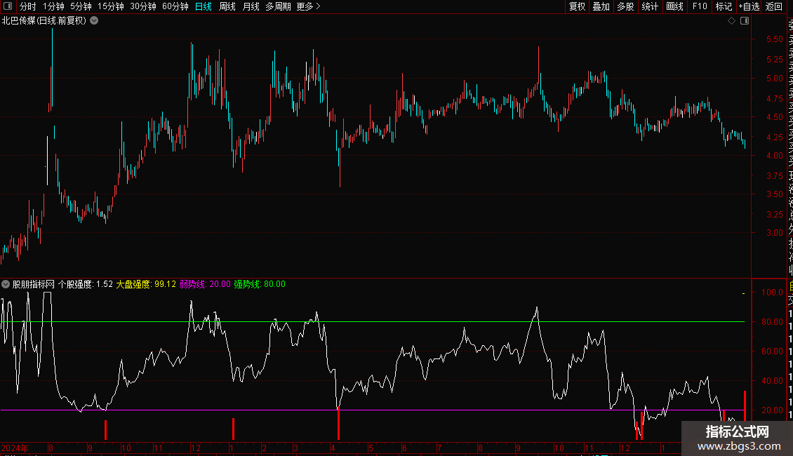 IF(个股强度>=80,个股强度,DRAWNULL),LINETHICK2;
