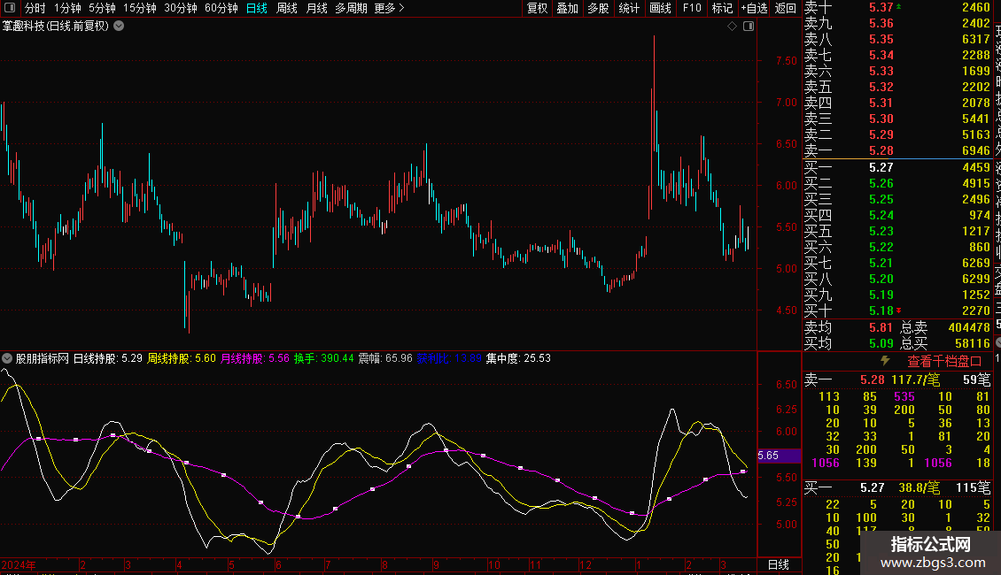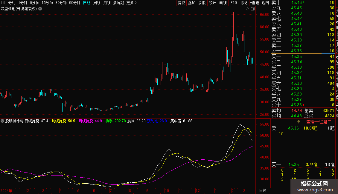 牛股:=日线持股>1 AND 换手>100 AND 获利比>85 AND 集中度<30 AND 强势=1 AND 出现涨停 AND 三日涨幅<20 AND 二十涨幅<50;
