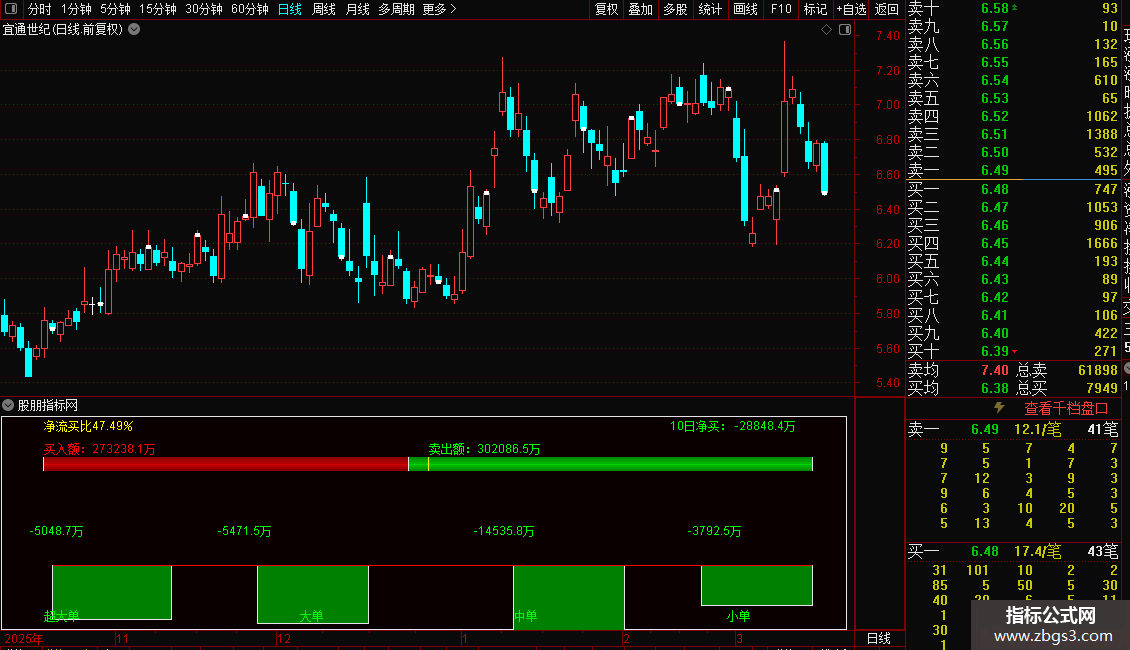 流出:=ABS(超S+大S+中S+小S)*1000/VOL;