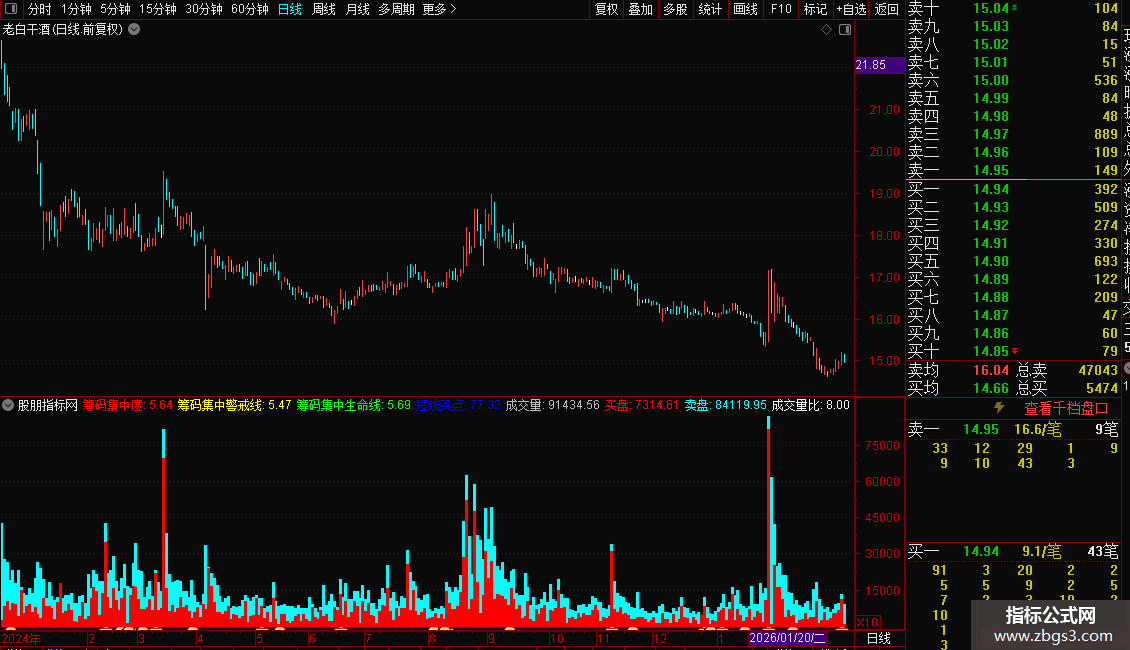 筹码集中度:EMA(庄筹,20),COLORRED;