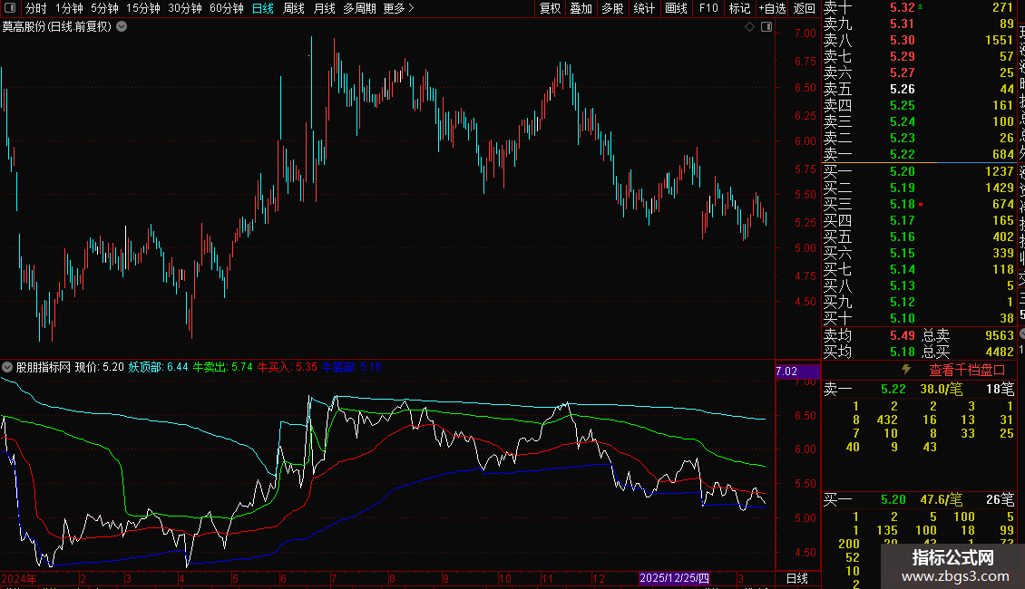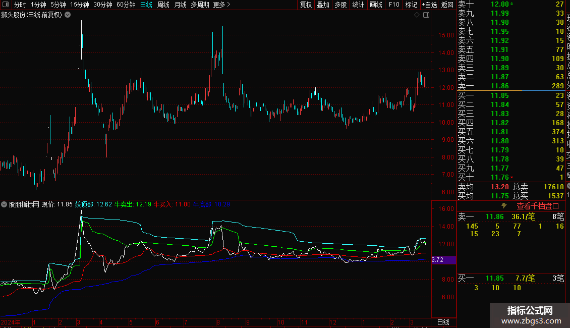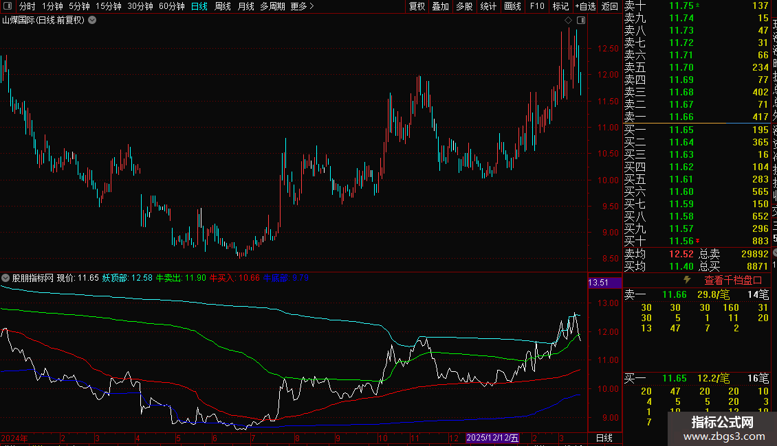 通达信抓牛捉妖 捉妖线上穿妖顶部即成妖副图指标源码
