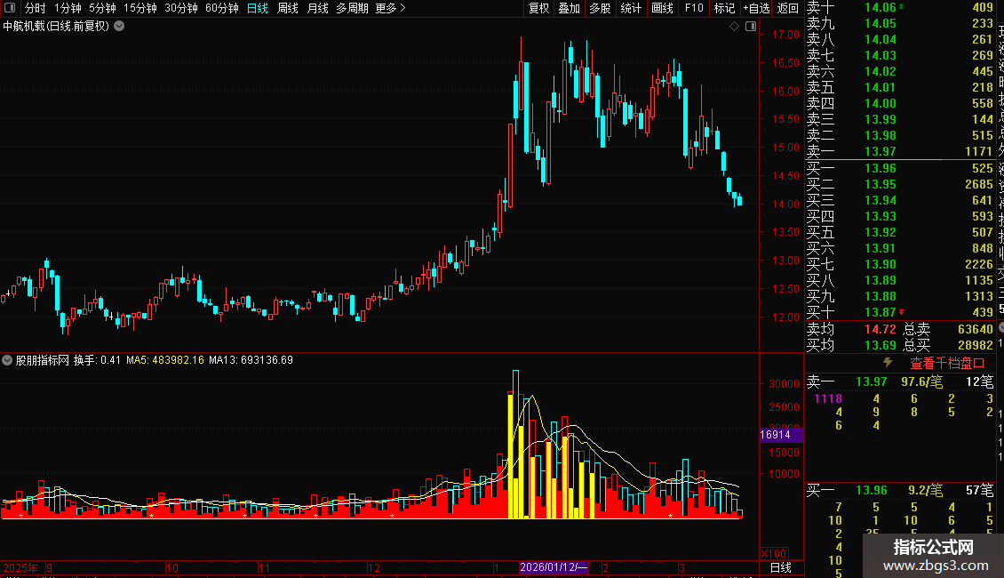 STICKLINE(HOUR>=14 AND HOUR<=15,0, V/((TIME-140000)/100+180)*240,4.5,1),COLORWHITE;