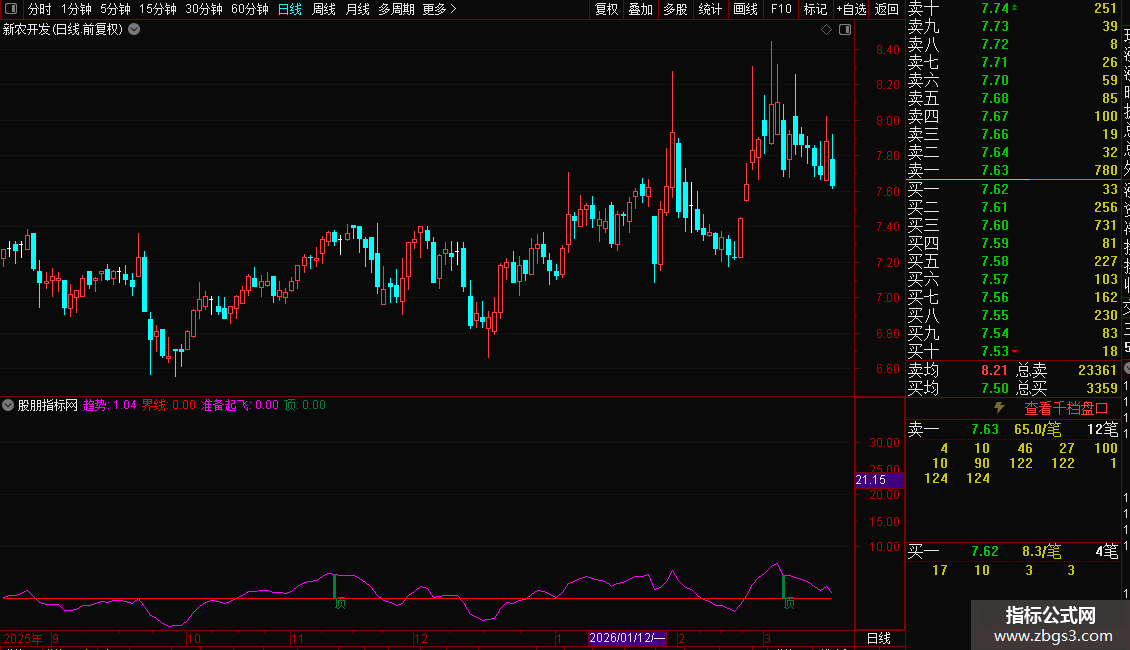 趋势:EMA((CLOSE-MA((2*CLOSE+HIGH+LOW)/4,30))/MA((2*CLOSE+HIGH+LOW)/4,30)*100,3),COLORMAGENTA,LINETHICK1;